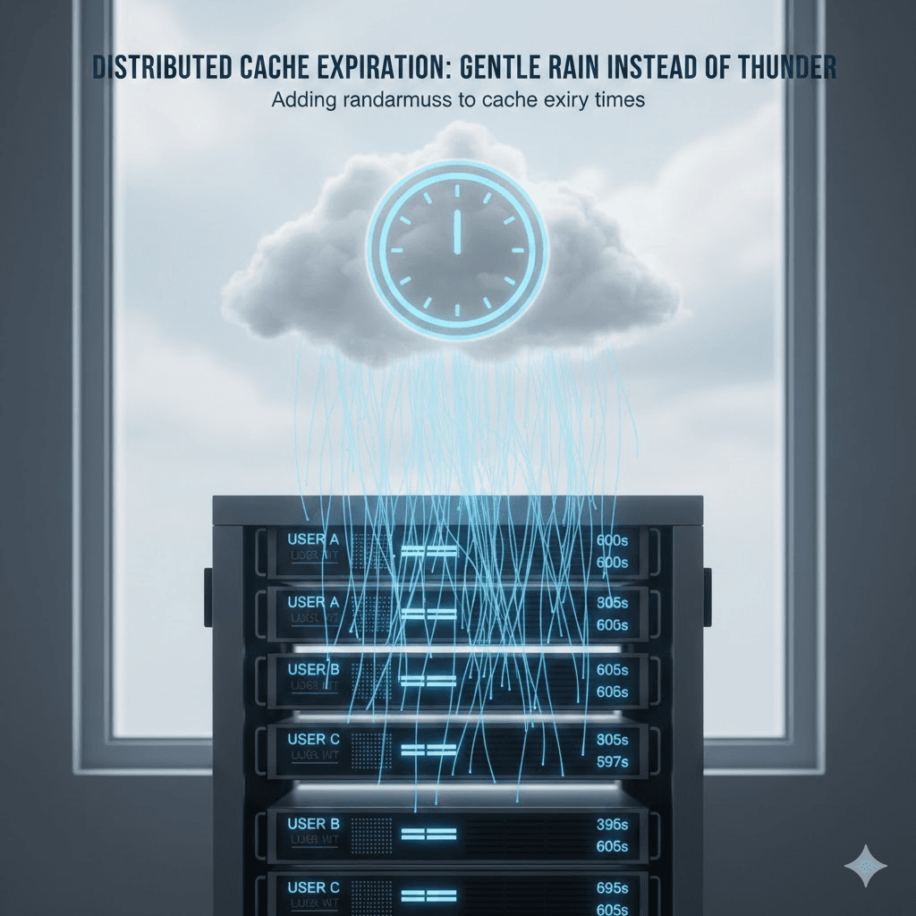 This is a clever one. Instead of setting every cache to expire in exactly 600 seconds, you add a bit of randomness: